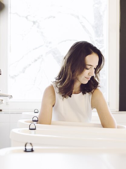 - Biosauna: ca. 60 °C, auch für Einsteigerinnen und Einsteiger sehr gut verträglich